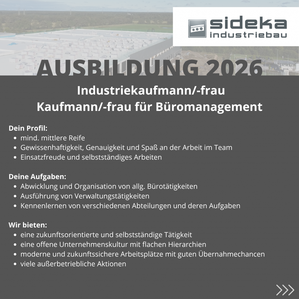 Ausbildung 2026 bei der Sideka Unternehmensgruppe!