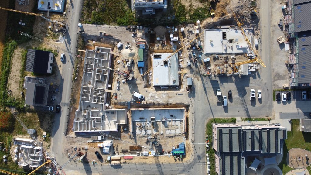 Es geht in großen Schritten voran: Alle Erdarbeiten sind nun abgeschlossen und die Rohbauarbeiten gehen zügig voran! Insgesamt werden hier sechs Gebäude entstehen. Fünf sind bereits unterkellert, sodass nun kurzfristig der Hochbau beginnen kann. Der weitere Plan sieht vor, dass zum Ende des Sommers auch die Rohbauarbeiten abgeschlossen sind und der Innenausbau beginnt